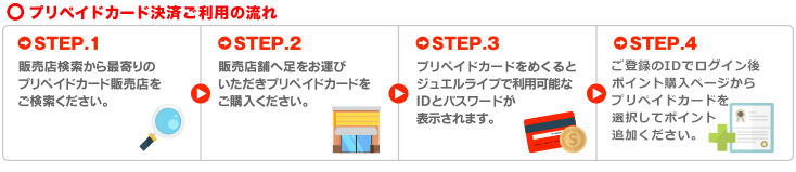 全国のビデオボックスなどで販売しているジュエルライブ専用プリペイドカードでポイント追加が可能です。